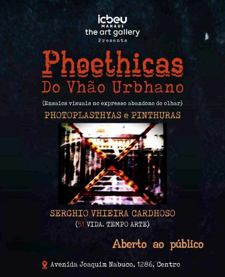 Na mostra que celebrou os 51 anos de sua carreira artística, na The Art Gallery, espaço cultural do Instituto Cultural Brasil Estados Unidos (ICBEU Manaus), Sérgio bem soube explorar a visão dele no que alcunhou de “Phoethicas do Vhão Urbhano”. Nela, ele conseguiu tirar 180 “photoplasthyas” das mais de três mil que tem no acervo pessoal. “É quase um filme sobre Manaus em fotos digitais com colagens e linhas de pintura”, declara.